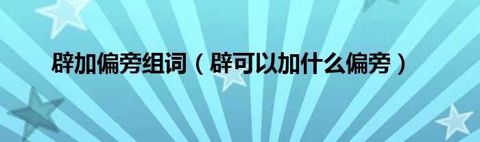 大家好,小帅来为大家解答以上问题。辟加偏旁组词,辟可以加什么偏旁很多人还不知道,现在让我们一起来看看吧!