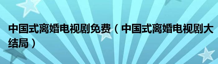 大家好,小安来为大家讲解下。中国式离婚电视剧免费,中国式离婚电视剧大结局很多人还不知道,现在让我们一起来看看吧!