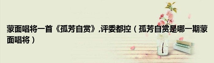 大家好,小安来为大家讲解下。蒙面唱将一首《孤芳自赏》,评委都控,孤芳自赏是哪一期蒙面唱将很多人还不知道,现在让我们一起来看看吧!