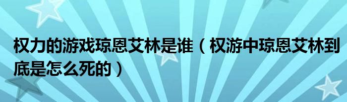 大家好,小安来为大家讲解下。权力的游戏琼恩艾林是谁,权游中琼恩艾林到底是怎么死的很多人还不知道,现在让我们一起来看看吧!