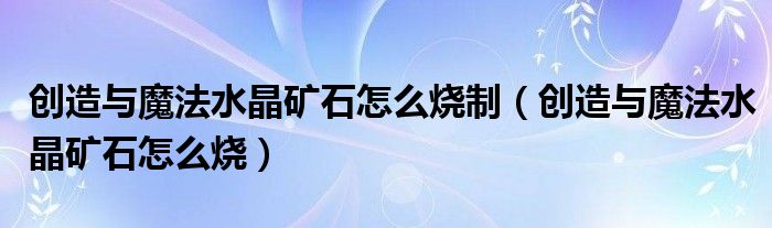 大家好,小安来为大家讲解下。创造与魔法水晶矿石怎么烧制,创造与魔法水晶矿石怎么烧很多人还不知道,现在让我们一起来看看吧!