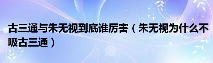大家好,小安来为大家讲解下。古三通与朱无视到底谁厉害,朱无视为什么不吸古三通很多人还不知道,现在让我们一起来看看吧!