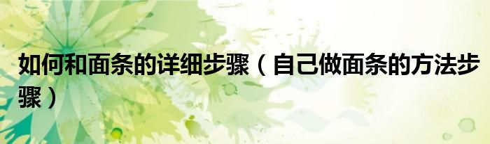 大家好,小安来为大家讲解下。如何和面条的详细步骤,自己做面条的方法步骤很多人还不知道,现在让我们一起来看看吧!