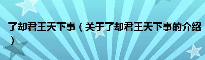 大家好,小安来为大家解答以上的问题。了却君王天下事,关于了却君王天下事的介绍很多人还不知道,现在让我们一起来看看吧!