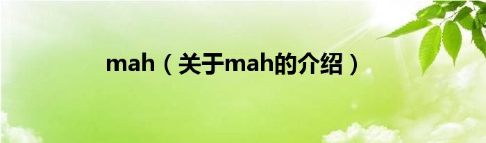 大家好,小安来为大家解答以上的问题。mah,关于mah的介绍很多人还不知道,现在让我们一起来看看吧!