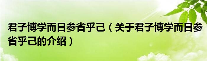 大家好,小安来为大家解答以上的问题。君子博学而日参省乎己,关于君子博学而日参省乎己的介绍很多人还不知道,现在让我们一起来看看吧!