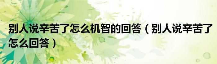 大家好,小安来为大家讲解下。别人说辛苦了怎么机智的回答,别人说辛苦了怎么回答很多人还不知道,现在让我们一起来看看吧!