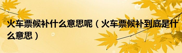 大家好,小安来为大家讲解下。火车票候补什么意思呢,火车票候补到底是什么意思很多人还不知道,现在让我们一起来看看吧!