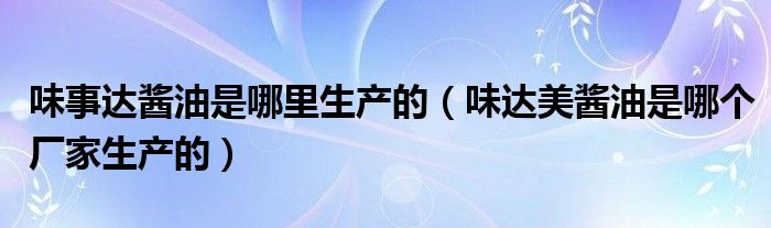 大家好,小安来为大家讲解下。味事达酱油是哪里生产的,味达美酱油是哪个厂家生产的很多人还不知道,现在让我们一起来看看吧!