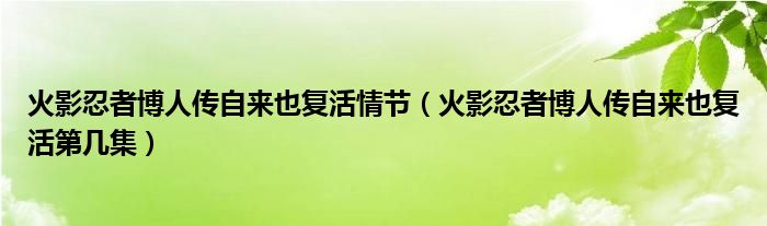 大家好,小安来为大家讲解下。火影忍者博人传自来也复活情节,火影忍者博人传自来也复活第几集很多人还不知道,现在让我们一起来看看吧!