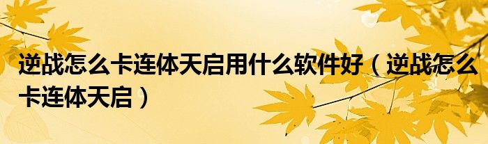大家好,小安来为大家讲解下。逆战怎么卡连体天启用什么软件好,逆战怎么卡连体天启很多人还不知道,现在让我们一起来看看吧!