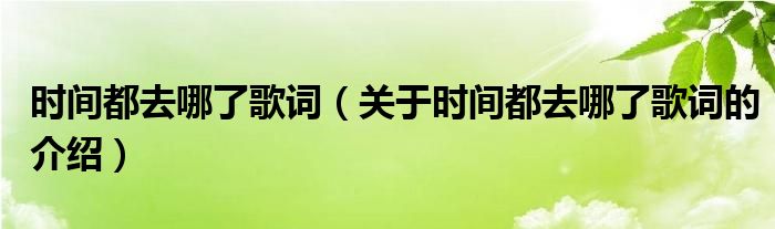 大家好,小安来为大家解答以上的问题。时间都去哪了歌词,关于时间都去哪了歌词的介绍很多人还不知道,现在让我们一起来看看吧!