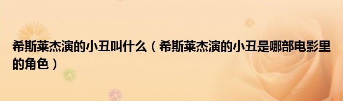 大家好,小安来为大家讲解下。希斯莱杰演的小丑叫什么,希斯莱杰演的小丑是哪部电影里的角色很多人还不知道,现在让我们一起来看看吧!