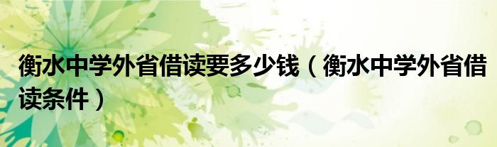 大家好,小安来为大家讲解下。衡水中学外省借读要多少钱,衡水中学外省借读条件很多人还不知道,现在让我们一起来看看吧!