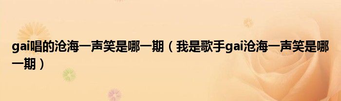 大家好,小安来为大家讲解下。gai唱的沧海一声笑是哪一期,我是歌手gai沧海一声笑是哪一期很多人还不知道,现在让我们一起来看看吧!