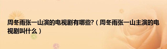 大家好,小安来为大家讲解下。周冬雨张一山演的电视剧有哪些?,周冬雨张一山主演的电视剧叫什么很多人还不知道,现在让我们一起来看看吧!