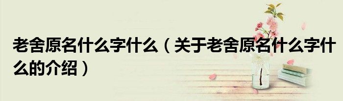 大家好,小安来为大家解答以上的问题。老舍原名什么字什么,关于老舍原名什么字什么的介绍很多人还不知道,现在让我们一起来看看吧!