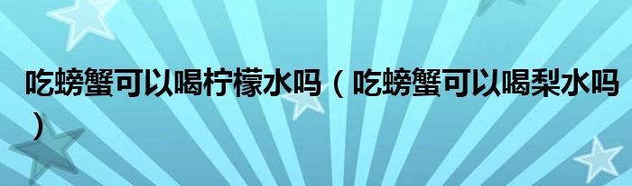大家好,小安来为大家讲解下。吃螃蟹可以喝柠檬水吗,吃螃蟹可以喝梨水吗很多人还不知道,现在让我们一起来看看吧!