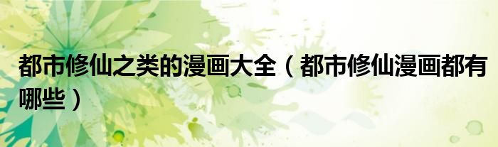 大家好,小安来为大家讲解下。都市修仙之类的漫画大全,都市修仙漫画都有哪些很多人还不知道,现在让我们一起来看看吧!