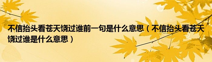 大家好,小安来为大家讲解下。不信抬头看苍天饶过谁前一句是什么意思,不信抬头看苍天饶过谁是什么意思很多人还不知道,现在让我们一起来看看吧!