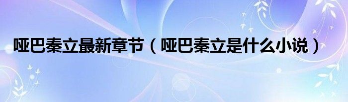 大家好,小安来为大家讲解下。哑巴秦立最新章节,哑巴秦立是什么小说很多人还不知道,现在让我们一起来看看吧!