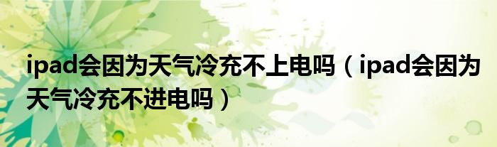 大家好,小安来为大家讲解下。ipad会因为天气冷充不上电吗,ipad会因为天气冷充不进电吗很多人还不知道,现在让我们一起来看看吧!