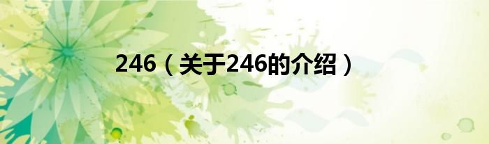 大家好,小安来为大家解答以上的问题。246,关于246的介绍很多人还不知道,现在让我们一起来看看吧!