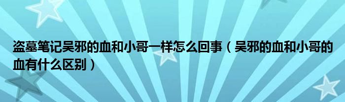 大家好,小安来为大家讲解下。盗墓笔记吴邪的血和小哥一样怎么回事,吴邪的血和小哥的血有什么区别很多人还不知道,现在让我们一起来看看吧!