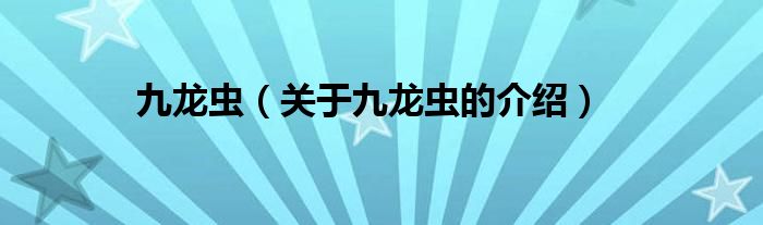 大家好,小安来为大家解答以上的问题。九龙虫,关于九龙虫的介绍很多人还不知道,现在让我们一起来看看吧!