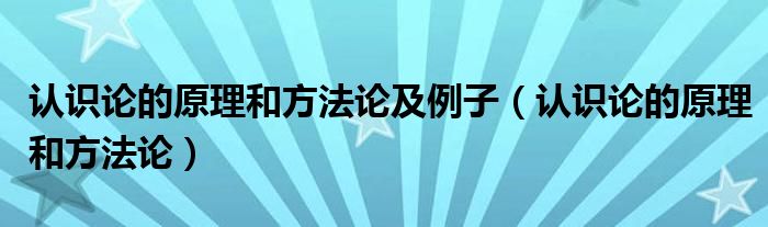 大家好,小安来为大家讲解下。认识论的原理和方法论及例子,认识论的原理和方法论很多人还不知道,现在让我们一起来看看吧!