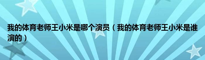 大家好,小安来为大家讲解下。我的体育老师王小米是哪个演员,我的体育老师王小米是谁演的很多人还不知道,现在让我们一起来看看吧!