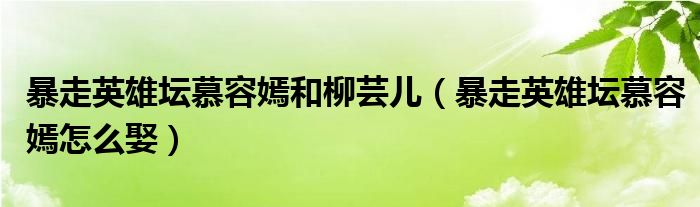 大家好,小安来为大家讲解下。暴走英雄坛慕容嫣和柳芸儿,暴走英雄坛慕容嫣怎么娶很多人还不知道,现在让我们一起来看看吧!