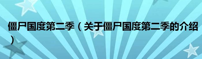 大家好,小安来为大家解答以上的问题。僵尸国度第二季,关于僵尸国度第二季的介绍很多人还不知道,现在让我们一起来看看吧!
