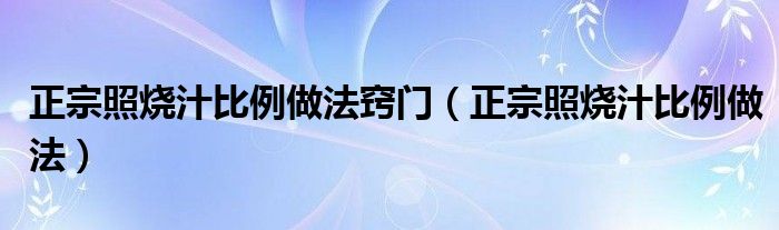 大家好,小安来为大家讲解下。正宗照烧汁比例做法窍门,正宗照烧汁比例做法很多人还不知道,现在让我们一起来看看吧!