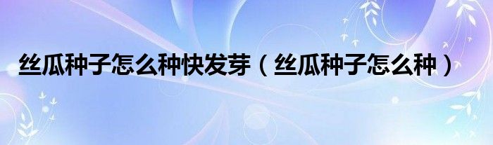 大家好,小安来为大家讲解下。丝瓜种子怎么种快发芽,丝瓜种子怎么种很多人还不知道,现在让我们一起来看看吧!