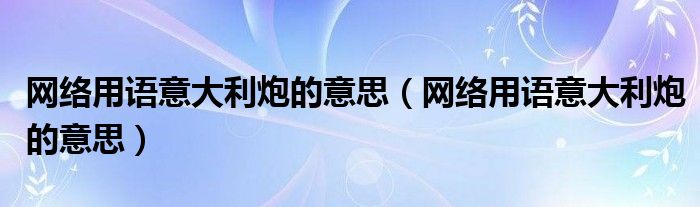 大家好,小安来为大家讲解下。网络用语意大利炮的意思,网络用语意大利炮的意思很多人还不知道,现在让我们一起来看看吧!