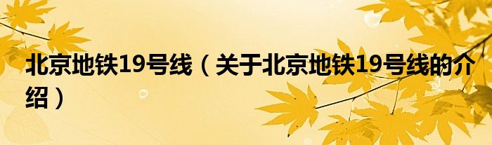 大家好,小安来为大家解答以上的问题。北京地铁19号线,关于北京地铁19号线的介绍很多人还不知道,现在让我们一起来看看吧!