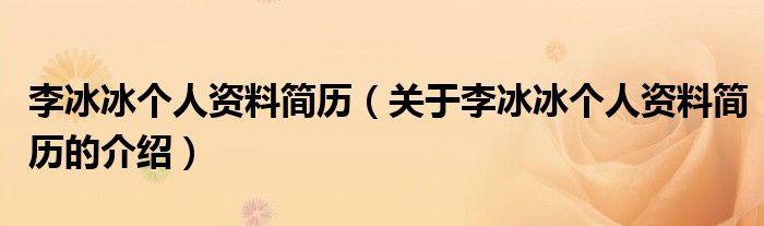 大家好,小安来为大家解答以上的问题。李冰冰个人资料简历,关于李冰冰个人资料简历的介绍很多人还不知道,现在让我们一起来看看吧!