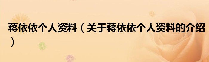 大家好,小安来为大家解答以上的问题。蒋依依个人资料,关于蒋依依个人资料的介绍很多人还不知道,现在让我们一起来看看吧!