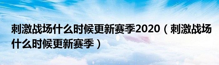 大家好,小安来为大家讲解下。刺激战场什么时候更新赛季2020,刺激战场什么时候更新赛季很多人还不知道,现在让我们一起来看看吧!