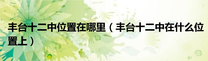 大家好,小安来为大家讲解下。丰台十二中位置在哪里,丰台十二中在什么位置上很多人还不知道,现在让我们一起来看看吧!