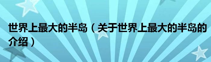 大家好,小安来为大家解答以上的问题。世界上最大的半岛,关于世界上最大的半岛的介绍很多人还不知道,现在让我们一起来看看吧!