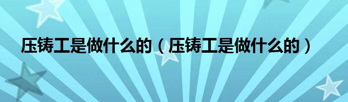 大家好,小安来为大家讲解下。压铸工是做什么的,压铸工是做什么的很多人还不知道,现在让我们一起来看看吧!