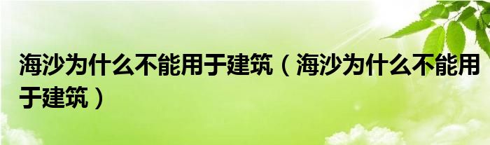 大家好,小安来为大家讲解下。海沙为什么不能用于建筑,海沙为什么不能用于建筑很多人还不知道,现在让我们一起来看看吧!