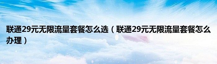 大家好,小安来为大家讲解下。联通29元无限流量套餐怎么选,联通29元无限流量套餐怎么办理很多人还不知道,现在让我们一起来看看吧!