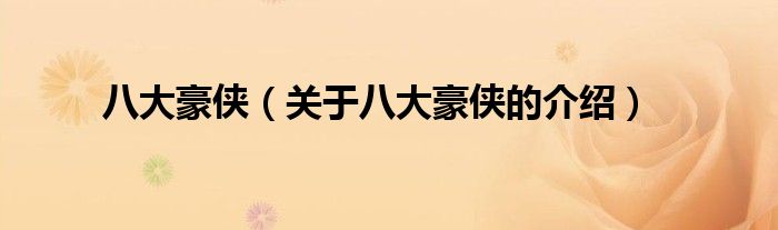 大家好,小安来为大家解答以上的问题。八大豪侠,关于八大豪侠的介绍很多人还不知道,现在让我们一起来看看吧!