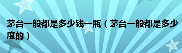 大家好,小安来为大家讲解下。茅台一般都是多少钱一瓶,茅台一般都是多少度的很多人还不知道,现在让我们一起来看看吧!