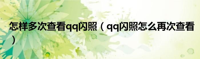 大家好,小安来为大家讲解下。怎样多次查看qq闪照,qq闪照怎么再次查看很多人还不知道,现在让我们一起来看看吧!