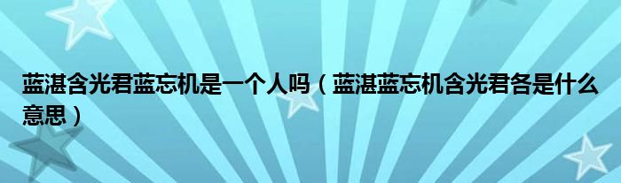 大家好,小安来为大家讲解下。蓝湛含光君蓝忘机是一个人吗,蓝湛蓝忘机含光君各是什么意思很多人还不知道,现在让我们一起来看看吧!