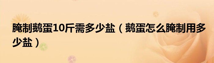 大家好,小安来为大家讲解下。腌制鹅蛋10斤需多少盐,鹅蛋怎么腌制用多少盐很多人还不知道,现在让我们一起来看看吧!